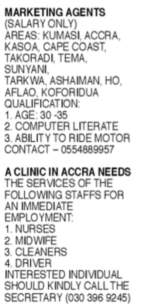 Prospective job seekers can find below the advertised jobs in the July 7, 2021, edition of Daily Graphic as published in the paper today.
