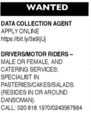 Prospective job seekers can find below the advertised jobs in the July 7, 2021, edition of Daily Graphic as published in the paper today.