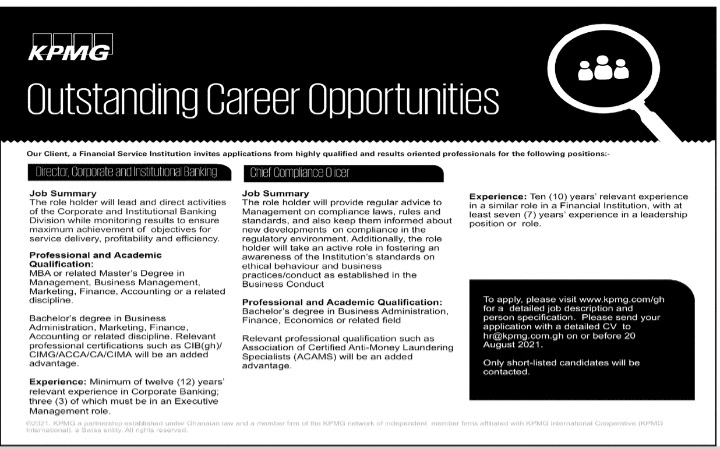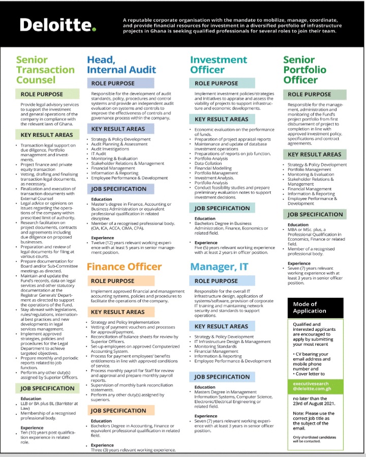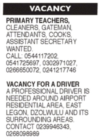 Prospective job seekers can find below the advertised jobs in the August 11, 2021, edition of Daily Graphic as published in the paper today.