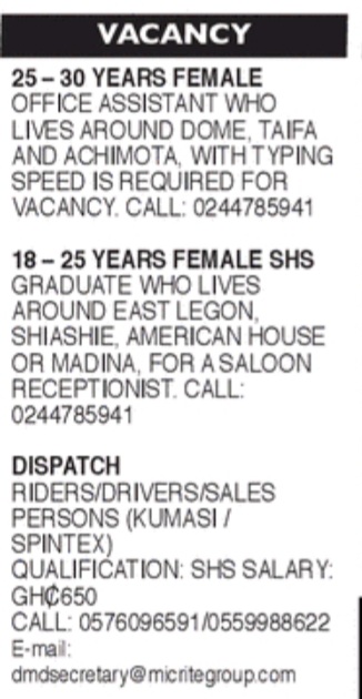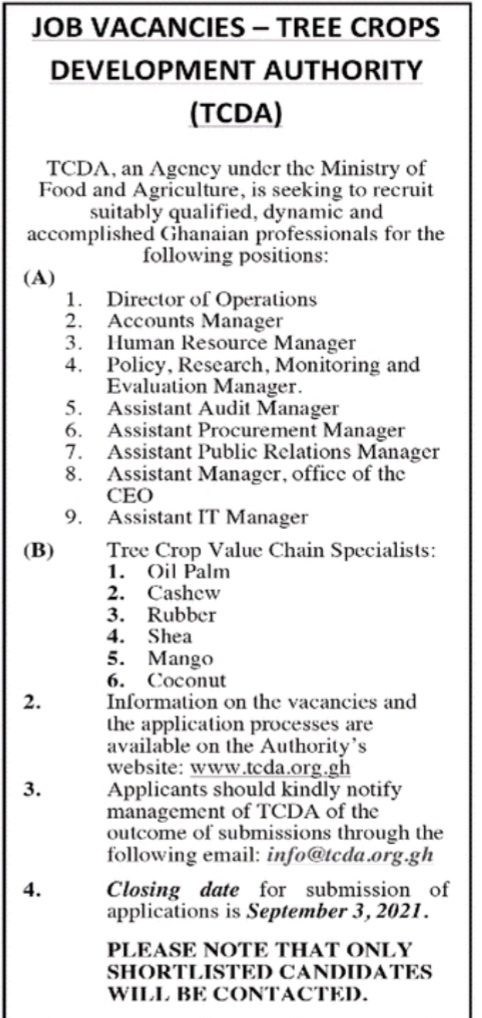 Prospective job seekers can find below the advertised jobs in the August 25, 2021, edition of Daily Graphic as published in the paper today.