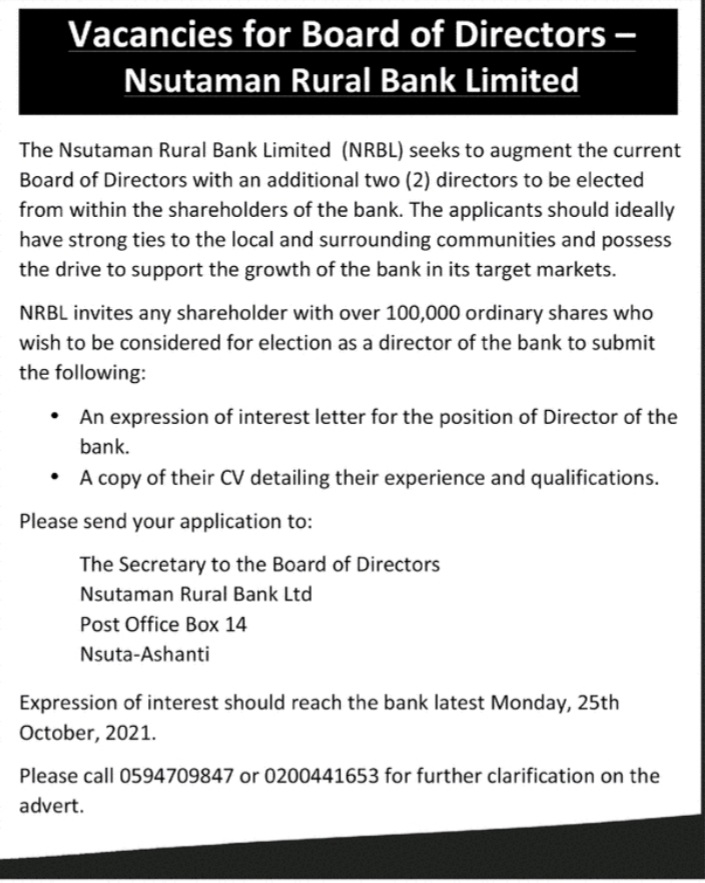 Prospective job seekers can find below the advertised jobs in the October 6, 2021, edition of Daily Graphic as published in the paper today.