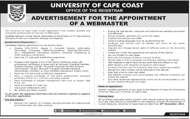 Prospective job seekers can find below the advertised jobs in the November 10, 2021, edition of Daily Graphic as published in the paper today.