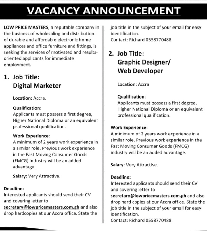 Prospective job seekers can find below the advertised jobs in the November 10, 2021, edition of Daily Graphic as published in the paper today.