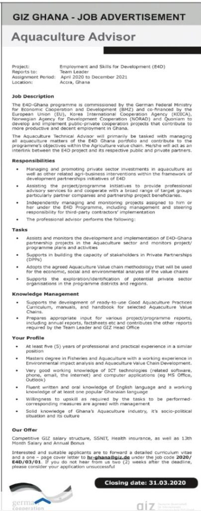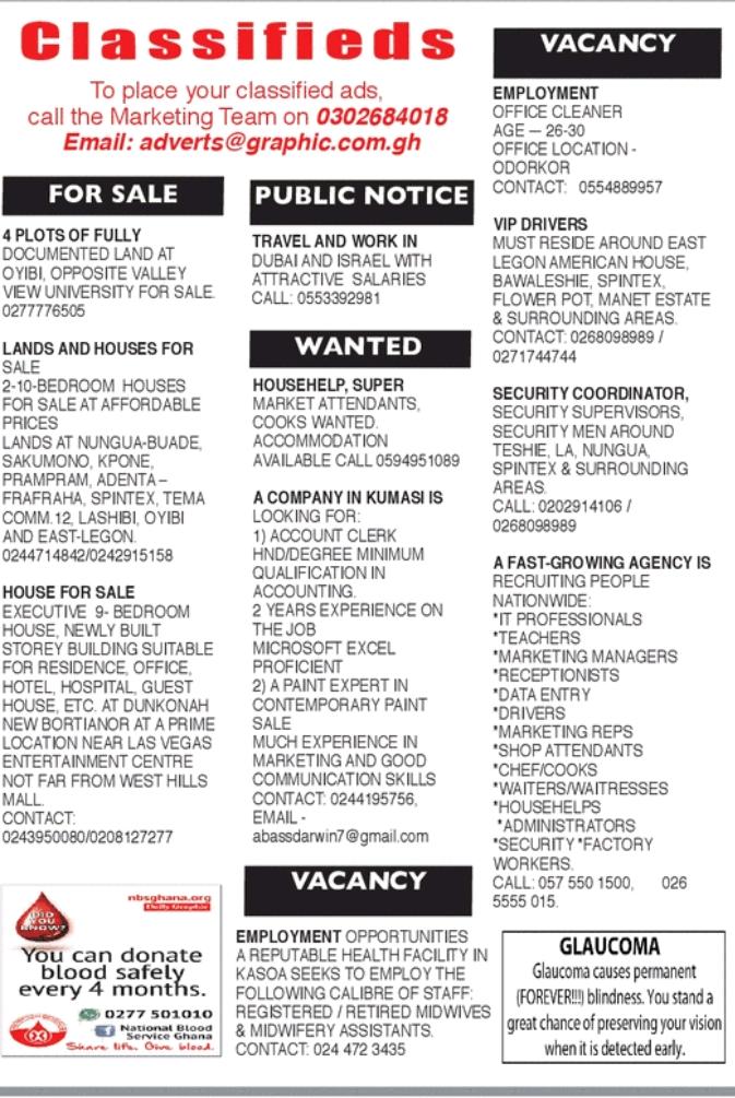 Prospective job seekers can find below the advertised jobs in the March 18, 2020 edition of Daily Graphic newspaper as published in the paper today.