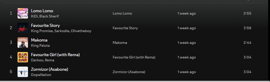 In surprising twists and turns, KiDi and Black Sherif’s ‘Lomo Lomo’ has toppled King Paluta’s latest hit ‘Makoma’ on Spotify.