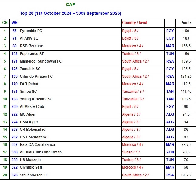 The rankings that was based on performances in the period between October 1, 2024 and September 30, 2025 had IFFHS rank Pyramids FC as the best club in Africa.