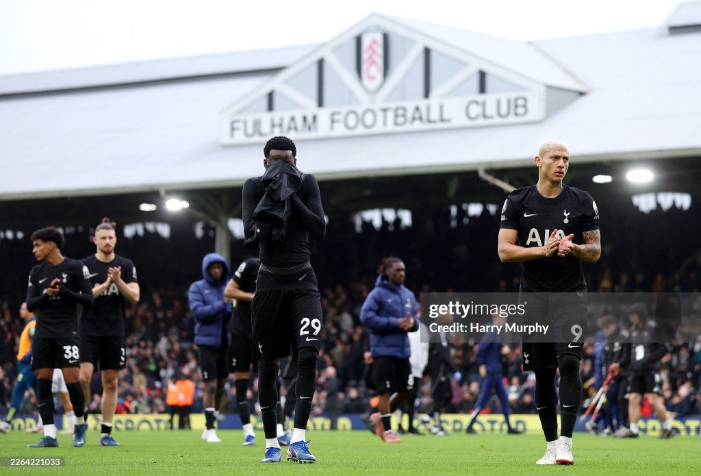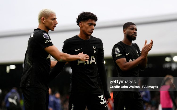 Pape Matar Sarr and Richarlison of Tottenham Hotspur look dejected after the team’s defeat in the Premier League match between Fulham and Tottenham Hotspurs (Photo by Harry Murphy/Getty Images)