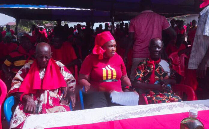 “On behalf of 20 affected communities gathered here this morning, the various media houses present, we greet you with pain and heavy hearts. Ladies and gentlemen of the press, we are dressed in red and black clothes not because one is bereaved or mourning but rather because the pain regards the forced seizure of our lands through intimidation by Okyenhene and his criminal elements”