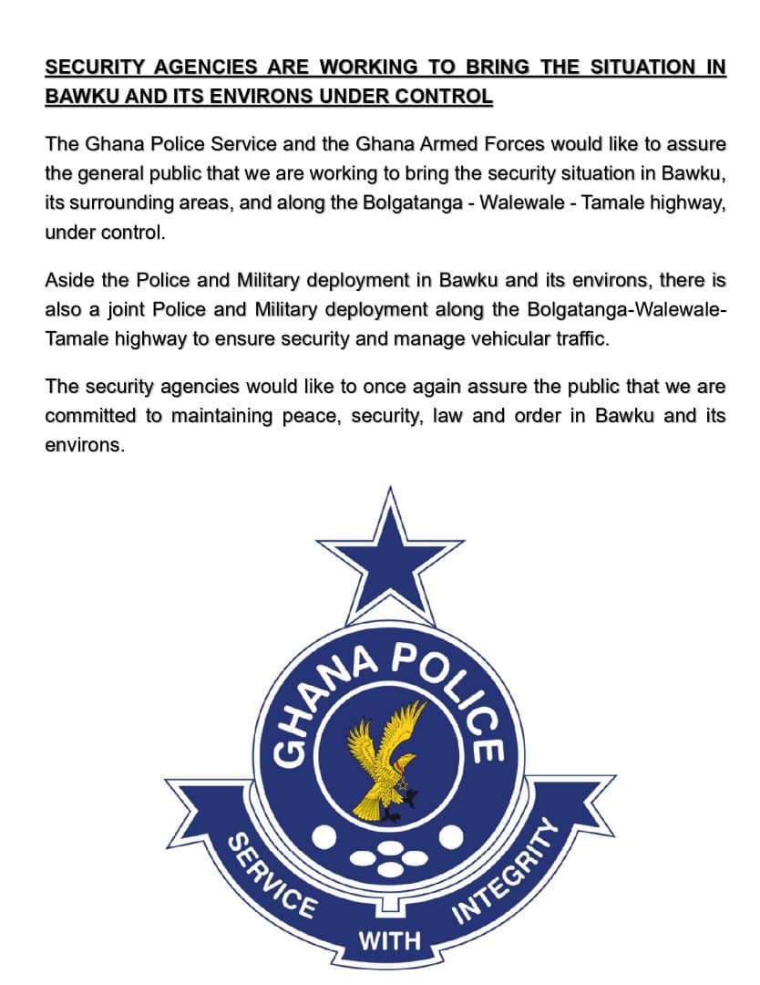 “The security agencies would like to once again assure the public that we are committed to maintaining peace, security, law, and order in Bawku and its environs.”