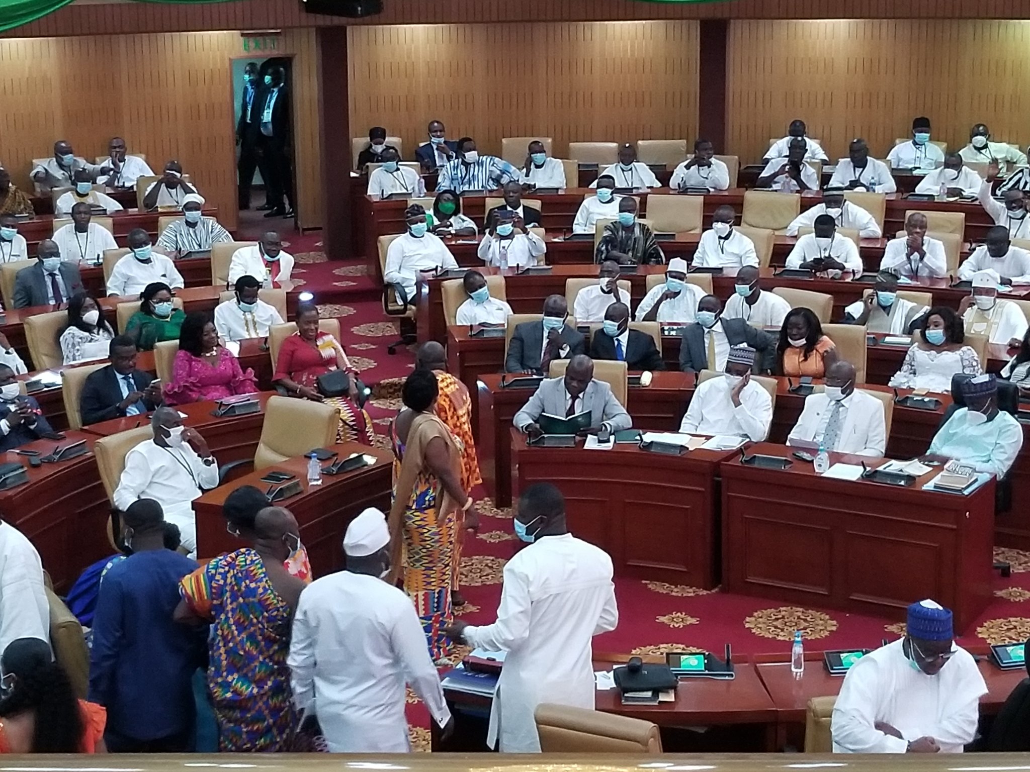 The confusion started when NPP MP for Ablekuma West Ursula Owusu-Ekuful entered and sat amidst the NDC MPs.