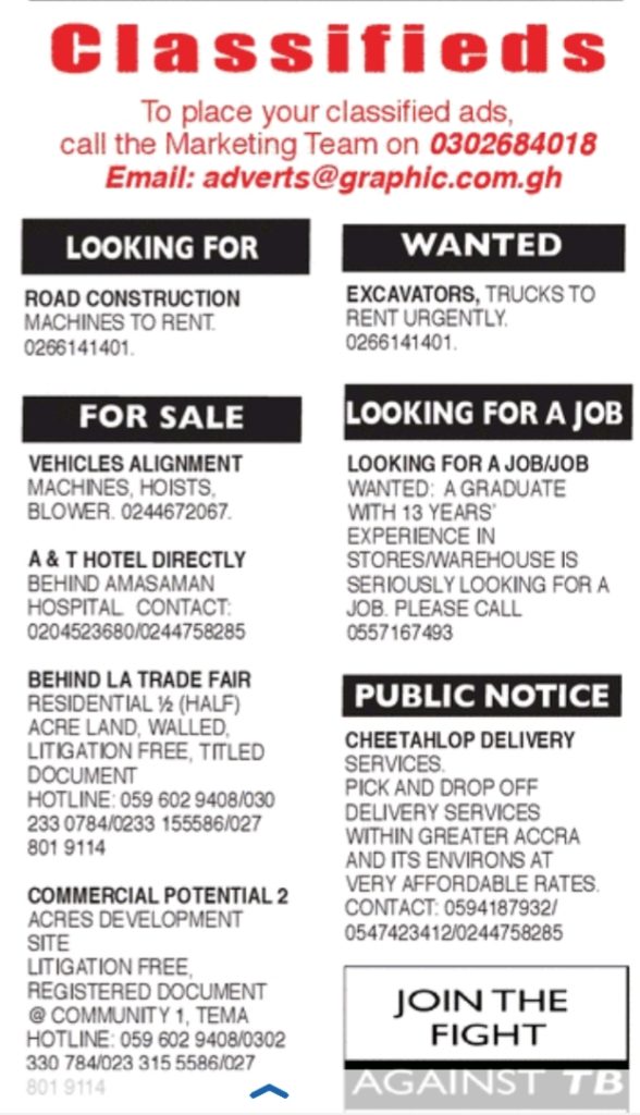 Prospective job seekers can find below the advertised jobs in the June 12, 2020 edition of Daily Graphic as published in the paper today.