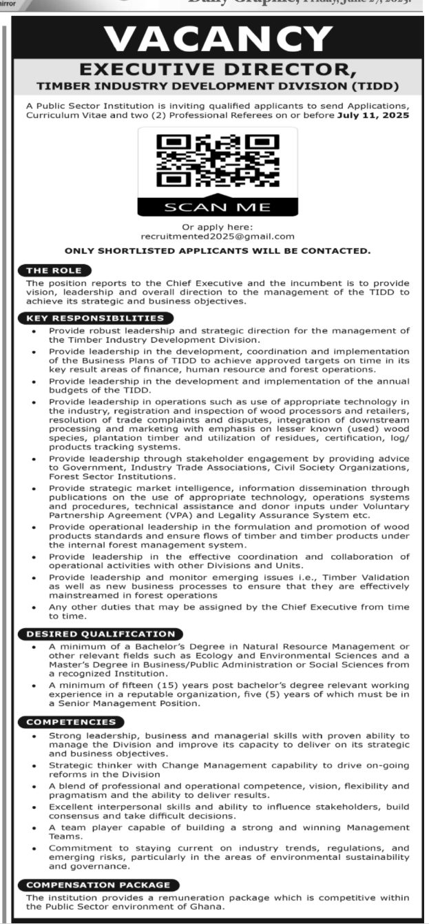 Prospective job seekers can find below the advertised jobs in the June 27, 2025, edition of the Daily Graphic as published in the paper today.