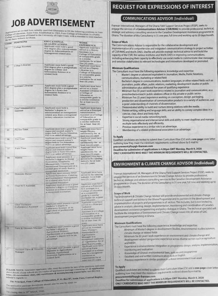 Prospective job seekers can find below the advertised jobs in the March 2, 2020 edition of Daily Graphic newspaper as published in the paper today.