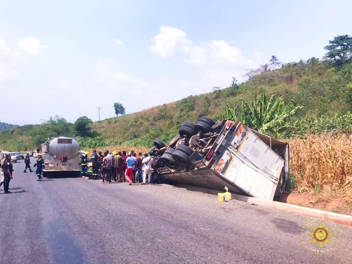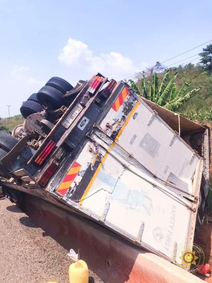 The victims were trapped in the Mercedes-Benz DAF cargo truck, which had lost control while negotiating a curve on Adukron Hill.