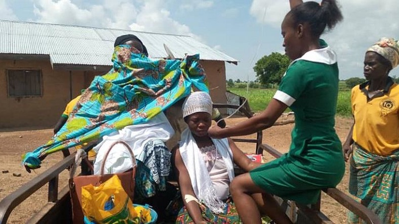 In certain parts of the North, tricycles have been converted into ambulances, and these are the only means of getting pregnant women to the hospital when their time is due for delivery.