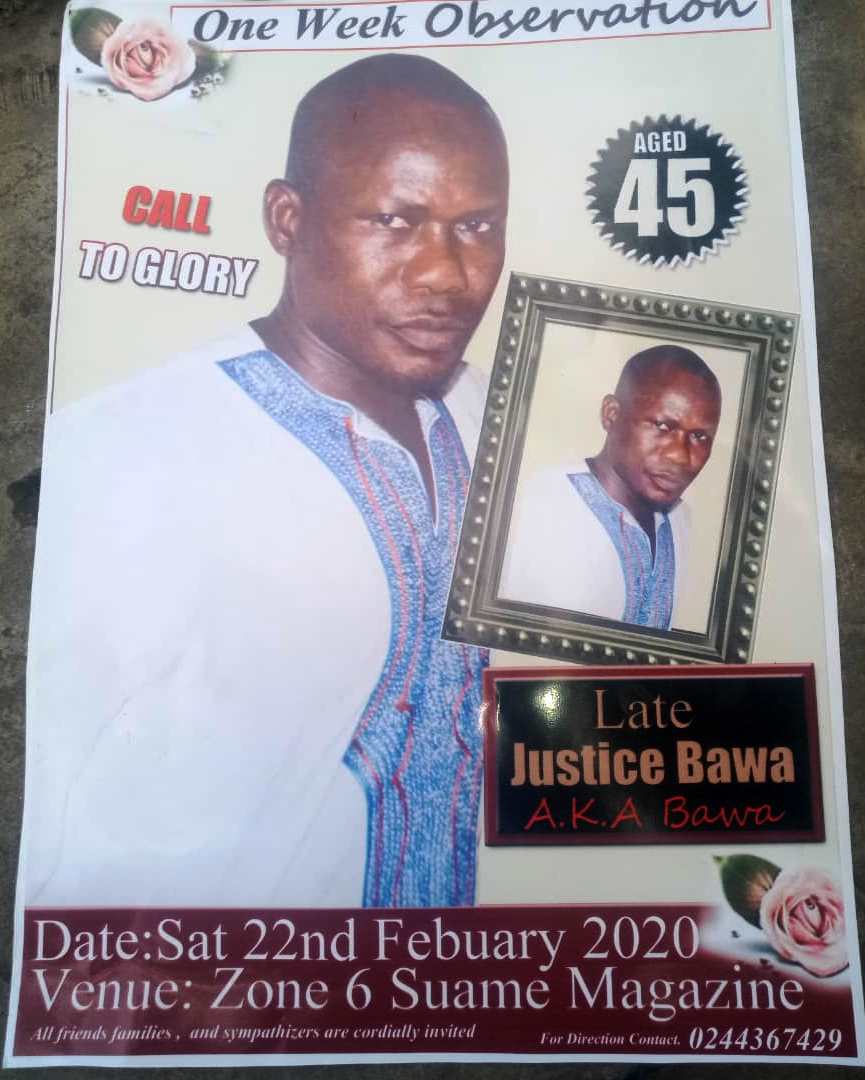 Justice Bawa had a welding shop in the famed Suame Magazine in the Ashanti region. After feeling a backache at work, he suddenly collapsed. He remained hospitalized for three days and died on February 15, 2020.