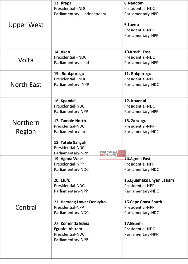 However, all those constituencies reverted to the NPP Presidential candidate in the 2016 elections.