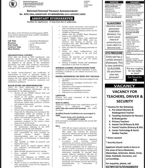 Prospective job seekers can find below the advertised jobs in the October 14, 2025, edition of the Daily Graphic as published in the paper today.