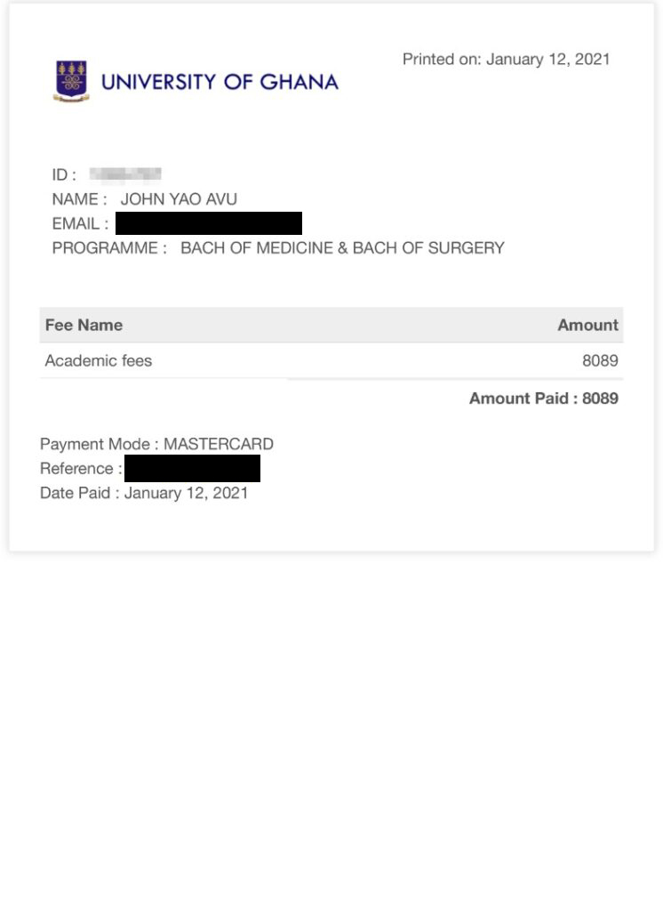 But his plea for the change in status was declined by the Unversity of Ghana, compelling the former Ketasco student to cough up more than 6000 cedis for his first year.