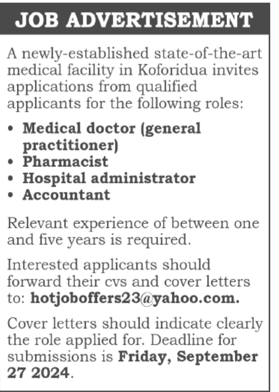Prospective job seekers can find below the advertised jobs in the September 25, 2024, edition of Daily Graphic as published in the paper today.