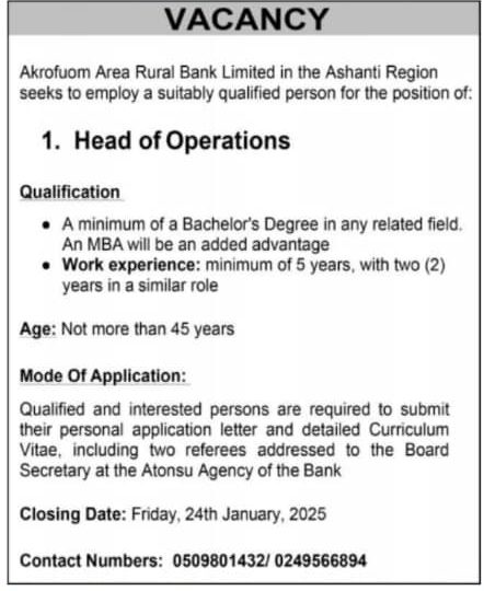 Prospective job seekers can find below the advertised jobs in the January 15, 2025 edition of Daily Graphic as published in the paper today.