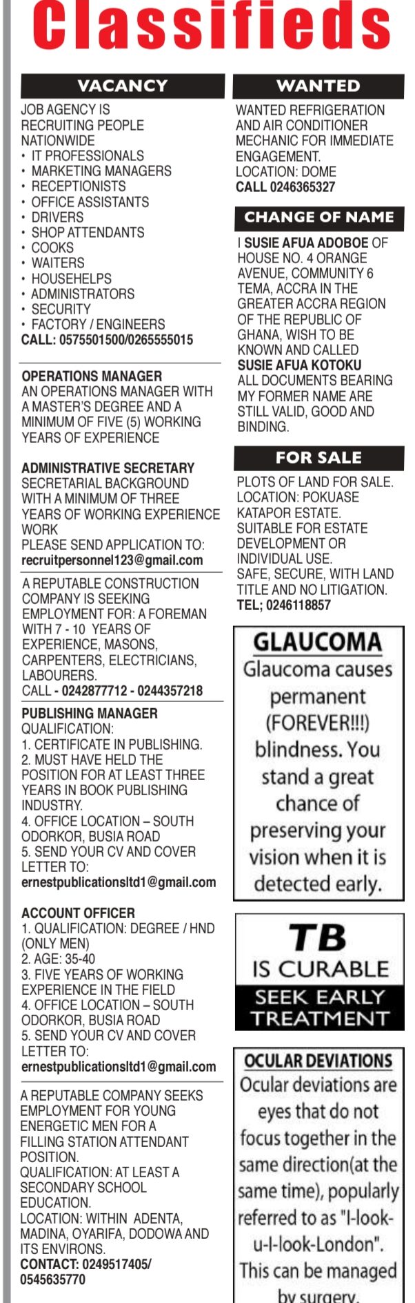 Prospective job seekers can find below the advertised jobs in the February 12, 2025 edition of Daily Graphic as published in the paper today.