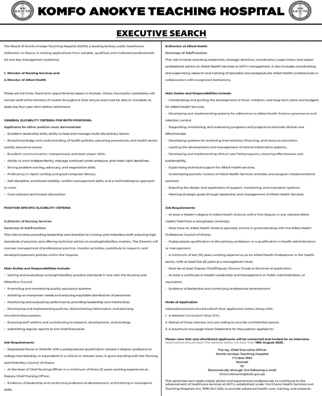Prospective job seekers can find below the advertised jobs in the August 6, 2025, edition of the Daily Graphic as published in the paper today.